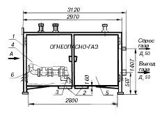 1 — шкаф 2 — обогреватели 3 — газопровод 4, 5 — двери 6 — оборудование технологическое |