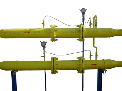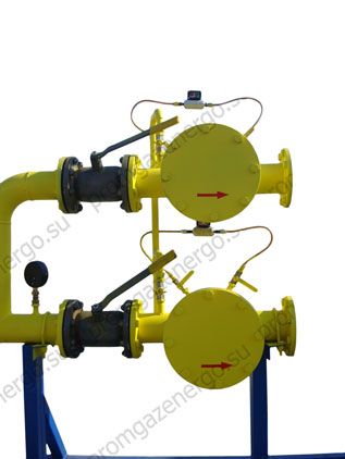 ГРУ-100 укомплектована манометрами на входе и предохранительно-сбросным клапаном ПСК-50 на выходе. На фильтрах ФГ установлены датчики перепада давления ДПД на 10 кПа, которые показывают степень загрязнённости фильтрующего элемента. На счётчиках установлены дифманометры ДСП-80 для измерения перепада давления. |
