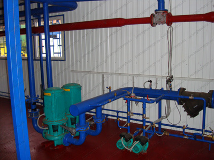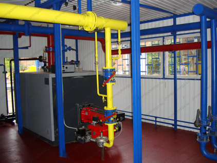 ![]() Группа компаний «ПромГазЭнерго» реализовала задачу по проектированию и изготовлению блочной котельной установки БКУ-2200, мощностью 2200 МВт, с показателями теплоносителя (сетевая вода) 95-70 С для потребителя и КПД-92%. Котельная состоит из двух отдельно транспортируемых модулей, которые соединяются в один на месте установки БКУ. ТЗ данного проекта подразумевало установку 2-х стальных жаротрубных котлов с двухходовым (реверсивным) движением продуктов сгорания ALPHA E 1100. Особенностью данного решения является установка комбинированной горелки на 2 вида топлива (газ и мазут) GAG 150/2 CE-03 TL/DN 50 фирмы «F.B.R.» итальянского производства. Особая конструкция котла обеспечивает ресурс его работы до 20 лет, при условии соблюдения условий эксплуатации. ![]() Автоматика, которой дооснащена горелка, позволяет осуществлять пуск и остановку котла, поддерживать температурный режим отопления в заданных пределах, учитывая температуру окружающей среды, руководствуясь показаниями специальных датчиков, а так же позволяет выполнить диспетчеризацию работы насосной группы с работой котлов, что позволяет обеспечить безопасность оборудования и самого строения. Котельная работает без постоянного присутствия обслуживающего персонала. ![]() ![]() БКУ оснащена расширительным баком, выполняющем функцию компенсации переменного давления воды в замкнутой системе, а так же водоподготовительной установкой, снижающей риск выхода из строя системы коммуникаций. ![]() ![]() Для предупреждения возможного возникновения пожара предусмотрена установка пожарной сигнализации. В комплекте с котельной установкой была изготовлена и спроектирована по местности дымовая труба, диаметром 500 мм, высотой – 15 м., исполнение трубы – самонесущая. Чтобы не возникало конденсата, поверхность дымовой трубы изолируется теплоизоляционным материалом, (толщина от 25мм. до 100мм.) и сверху укрывается листом оцинкованной или нержавеющей стали. Дымовая труба проходит внутри самонесущего металлического каркаса. Также дымовые трубы могут быть оборудованы молниезащитой, лестницей и при необходимости световым ограждением.Транспортировка трубы осуществляется отдельно от котельной в разобранном состоянии секциями. |